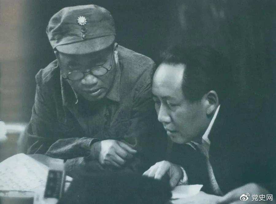 1945年4月,毛澤東和朱德在中國(guó)共產(chǎn)黨第七次全國(guó)代表大會(huì)上。