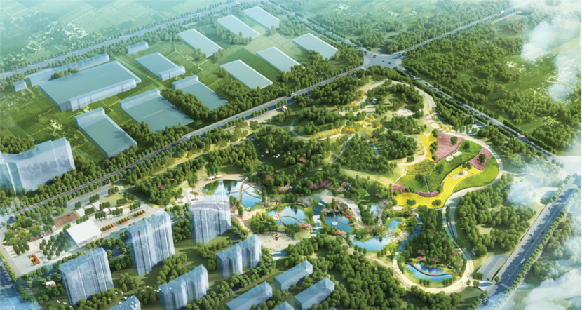 一個集蓄水、親水、景觀于一體的雨水泡泡,旱季為花池,雨季是水池,冬季是溜冰池,與國家提倡的海綿城市建設理念相契合。規(guī)劃針對工業(yè)區(qū)產(chǎn)業(yè)特點、人口結構特征,采用現(xiàn)代簡約式設計手法,突出山水林泉自然風貌,使公園成為休閑娛樂、康體健身、充滿活力的城市綠心。